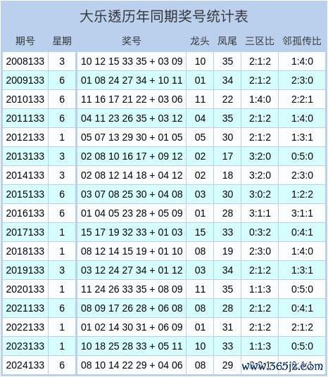 三区比数据分析:客岁奖号三区比为2:2:1,本期展望三区比为1:1:3。